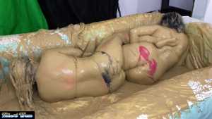 The girls give it their all in a duel to be crowned wrestler of the year! For this occasion, they decide the fight will go all the way... in a fighting ring, in a mud fight! Yes! Lots of mud for the girls to roll around in, dressed sexy in bikinis. Each one fights to be the champion. Who will win?