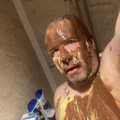 JimT777 was surprised by piggishfootman with a big sloppy cream pie to the face